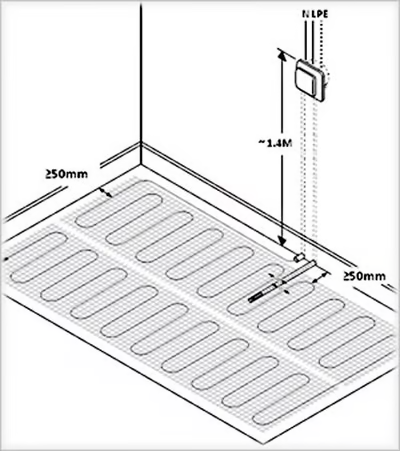 Vergeet niet een vloersensor aan te brengen op de mat in de vloer.