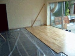 De laminaatvloer moet worden gelegd met inachtneming van de aanbevelingen van de fabrikant. Tijdens het leggen van de vloer dient u ervoor te zorgen dat de folies en voedingskabels niet worden beschadigd.
