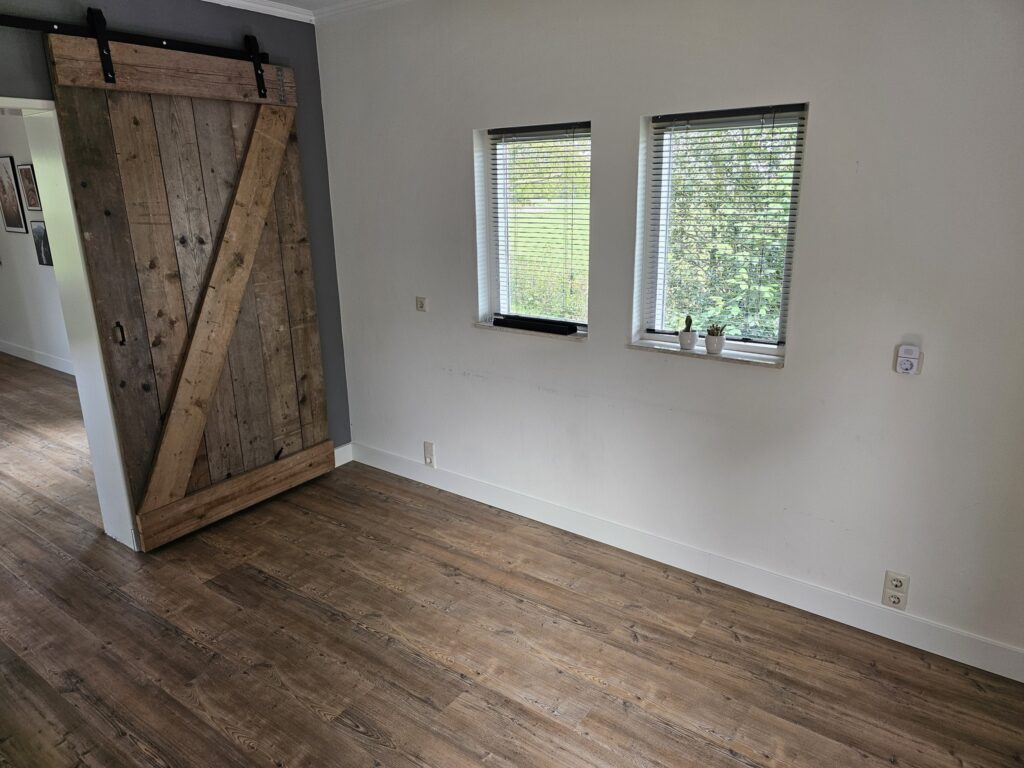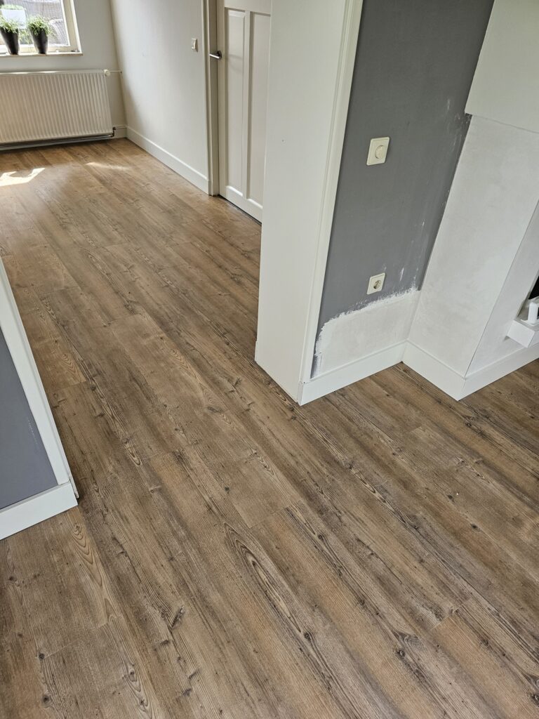 Eindresultaat van de ruimte met een PVC vloer erover: