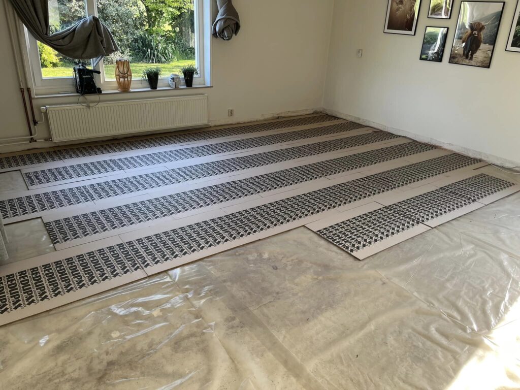 Hierna komt de folie verwarming op de ondervloer te liggen.