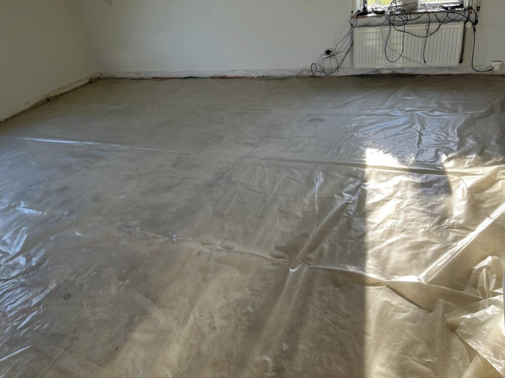 Eerst leggen wij een damp remmende folie op de vloer voor het beschermen van de redupax ondervloer.